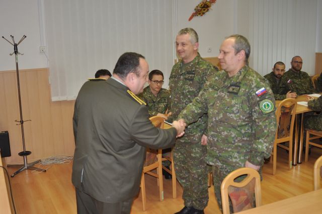 Následne veliteľ Úradu logistického zabezpečenia plukovník Ing. Jozef ŠEVČÍK poďakoval za prácu podplukovníkovi ORAVKINOVI, ktorú vykonal v prospech základne a zároveň zaželal veľa pracovných úspechov a dobrých rozhodnutí na novej funkcii.