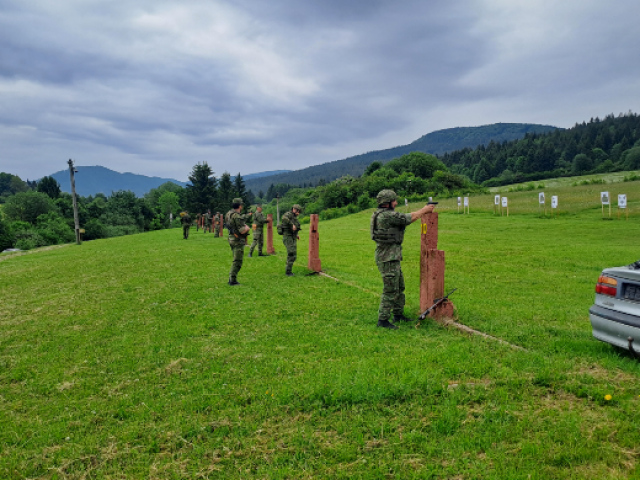 Praktické preskúšanie zo základných bojových zručností Dňa 5.6.2023 profesionálni vojaci 41. zásobovacej základne Nemšová absolvovali praktické preskúšanie zo základných bojových zručností v PS Kamenná Poruba. Zamestnanie riadil zástupca veliteľa 41. zz Nemšová mjr. Ing. Marek Fedorčík a zúčastnilo sa ho 62 profesionálnych vojakov 41. zz. Všetci PrV boli preskúšaní z Taktickej prípravy, RCHBO, Topografickej prípravy, sebaobrany a Streleckej prípravy, ktorá pozostávala z cvičenia - Hádzanie RG za pohybu a Streľba z miesta na miznúce a pohyblivé ciele (Sa vz. 58) a na pevné ciele (Pi vz. 82). Riadiaci zamestnania mjr. Ing. Marek Fedorčík zhodnotil, že úlohy a ciele zamestnania boli splnené a všetci zúčastnení PrV 41. zz splnili preskúšanie zo základných bojových zručností za rok 2023.