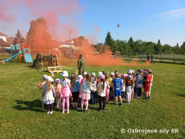 Deň plný aktivít s profesionálnymi vojakmi Príslušníci 41. zásobovacej základne Nemšová sa 27. mája 2024 podieľali na zabezpečení brannej výchovy prispôsobenej škôlkarskému publiku v Materskej škole v Slávnici. Profesionálni vojaci predstavili deťom prostriedky individuálnej ochrany - ochrannú masku a jednorazovú pláštenku. Veľa smiechu si deti užili najmä počas preskúšania týchto ochranných pomôcok, ako aj pri príprave a prechode imitovaným zamoreným priestorom, kde bola použitá nebezpečenstvo označujúca červená dymovnica. Ďalšou aktivitou pre škôlkarov bola aj pripravená „opičia dráha“, na ktorej si hravou formou precvičili svoje fyzické schopnosti. Počas súťaženia v prekonávaní jednotlivých prekážok sa navzájom povzbudzovali a snažili sa podať čo najlepší výkon, pričom traja najlepší z každej triedy boli odmenení vecnými cenami. K profesionálnym vojakom bezprostredne patrí aj vojenská technika a výstroj. Aj preto plánovanú aktivitu doplnila ukážka vozidiel Nissan Navara a Aktis. Z vojenského výstroja to bola zas nepriestrelná vesta a balistická prilba. Prekvapenie detí nastalo najmä pri skúšaní týchto výstrojných súčiastok, pretože nečakali, že kvôli ich vyššej váhe bude ich skúšanie o niečo náročnejšie. S menšou podporou profesionálnych vojakov, no najmä vzájomnej pomoci detí samotných, si výstroj napokon aj úspešne vyskúšali. Príslušníci 41. zásobovacej základne sa zamerali nielen na samotné ukážky, ale ich hlavným cieľom bolo, aby sa deti naučili tímovej práci, riešeniu krízových situácií a zvýšili svoju fyzickú pripravenosť, čo dosiahli prístupnou hravou formou. V závere svojej návštevy pani učiteľky, ako aj deti, poďakovali profesionálnym vojakom a prejavili záujem o ďalšiu spoluprácu so 41. zásobovacou základňou Nemšová.