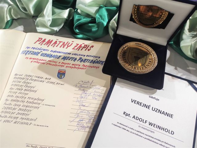 Veliteľ 43. zásobovacej základne medzi laureátmi Prvý septembrový piatok patril v meste Partizánske významným osobnostiam mesta a okolia, ktoré sa svojou činnosťou pričinili o kultúrny, športový či iný prospech mesta či Hornej Nitry. Medzi významnými osobnosťami, ktoré ocenil primátor mesta Jozef Božik, bol ocenený i kapitán Adolf Weinhold in memoriam. Kaskádové kino v Partizánskom v piatok 6. septembra privítalo významných hostí. Oceneným bol okrem významných osobností z oblasti kultúry, športu, žurnalistiky či medicíny i kapitán Adolf Weinhold. Táto významná osoba sa v priebehu roka 1944 ako aktívny člen protifašistického odboja a SNP zaslúžil o vyzbrojenie zmobilizovaných vojakov a partizánov a následnú likvidáciu odporu všetkých miestnych profašisticky orientovaných obyvateľov. Z prístupných dokumentov je preukázaná jeho aktivita priamo na fronte, kde upevňoval morálku bojujúcich. Osobne organizoval obranu dolín Nitry a Nitrice, dozeral na obsadzovanie dôležitých úsekov a vyznamenal sa aj v samotných bojoch pri viacerých obciach. Cenu za jeho zásluhy udelenú in memoriam prevzal veliteľ 43. zásobovacej základne Zemianske Kostoľany podplukovník Michal Danihlík, ktorý sa ako laureát zapísal do kroniky mesta Partizánske medzi ďalšie významné osobnosti spoločenského a kultúrneho života. Primátor mesta ocenil spoluprácu so základňou, vyzdvihol potrebu kooperácie miestnej samosprávy a Ozbrojených síl Slovenskej republiky a vyjadril dôležitosť odkazu Slovenského národného povstania