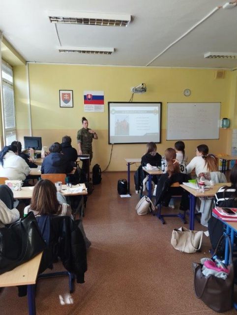 Regrutačné aktivity 4. pluku Február 2025 sa na 4. pluku logistiky niesol v znamení regrutačných aktivít na stredných školách. Posledná aktivita v tomto mesiaci prebehla 18. februára 2025. V priebehu mesiaca február sa príslušníci skupiny na podporu regrutácie 4. pluku logistiky stretli so študentmi viacerých stredných škôl v Považskej Bystrici. Ako prvú školu navštívili Strednú zdravotnícku školu a následne aj Gymnázium a Obchodnú akadémiu v Považskej Bystrici. Cieľom prezentácie bolo oboznámiť študentov s možnosťami služby v Ozbrojených silách Slovenskej republiky, štúdia na Akadémii ozbrojených síl generála Milana Rastislava Štefánika v Liptovskom Mikuláši, Technickej univerzite v Košiciach, Univerzite obrany v Brne a Univerzite Karlovej v Hradci Králové. Príslušníci skupiny na podporu regrutácie informovali študentov, ako sa stať profesionálnym vojakom, ako vyzerá pracovný deň na útvare, alebo v čom spočíva činnosť vojaka podľa jednotlivých funkcií a zaradenia. Jednou z oblastí, ktorú príslušníci 4. pluku priblížili študentom boli platové podmienky, možnosť pôsobenia v zahraničných operáciách a benefity pre profesionálnych vojakov. Otázok smerom k profesionálnym vojakom bolo neúrekom, čo svedčí o tom, že mladí ľudia vnímajú atraktivitu tohto povolania a zároveň aj to, že toto povolanie je celoživotným poslaním. „Cieľom týchto aktivít je priblíženie povolania profesionálneho vojaka mladej generácií. Ozrejmili sme im celý proces prijímacieho konania, čo všetko musia absolvovať a s kým majú komunikovať. Pozornosť sme upriamili aj na možnosť stať sa kadetom na Akadémii ozbrojených síl generála Milana Rastislava Štefánika v Liptovskom Mikuláši či iných vysokých školách, ktoré majú s našim rezortom spoluprácu, nakoľko cieľovou skupinou boli práve študenti, ktorí tento rok maturujú. Spolupráca s uvedenými strednými školami je na veľmi vysokej úrovni, čo ma samozrejme teší a v týchto aktivitách budeme pokračovať.“ uviedol štábny nadrotmajster Jaroslav Novomestský, člen skupiny na podporu regrutácie.