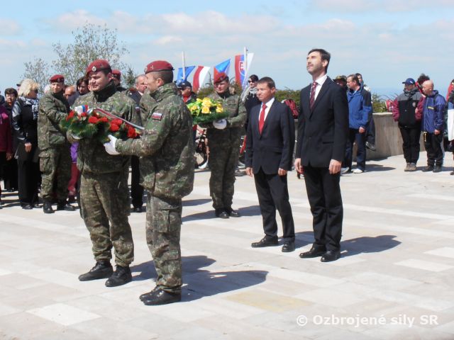 Veliteľ VÚ 4070  Žilina podplukovník Ing. Peter Chlebec s ďalšími významnými funkcionármi položili vence ako prejav pietnej spomienky pri Pamätníku 1. Československého armádneho zboru na vrchu Polom – Javorina.
