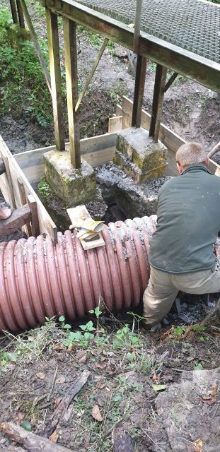Dňa 16.9.2019 PrV vykonávajúci práce, odstránili debnenie na priepusti medzi skladmi 44 a 45, vyčistili pätku na moste, zadebnili ju a dňa 17.9.2019 budú túto pätku betónovať. Ďalšie práce sa vykonávali na oplotení.
